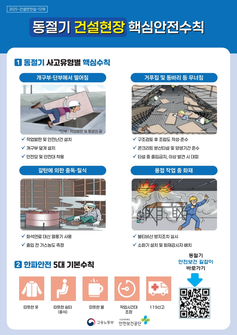 안전보건공단 공지사항에 [동절기 건설현장 안전보건길잡이 및 안전수칙OPS] 자료가 게시되었으니
