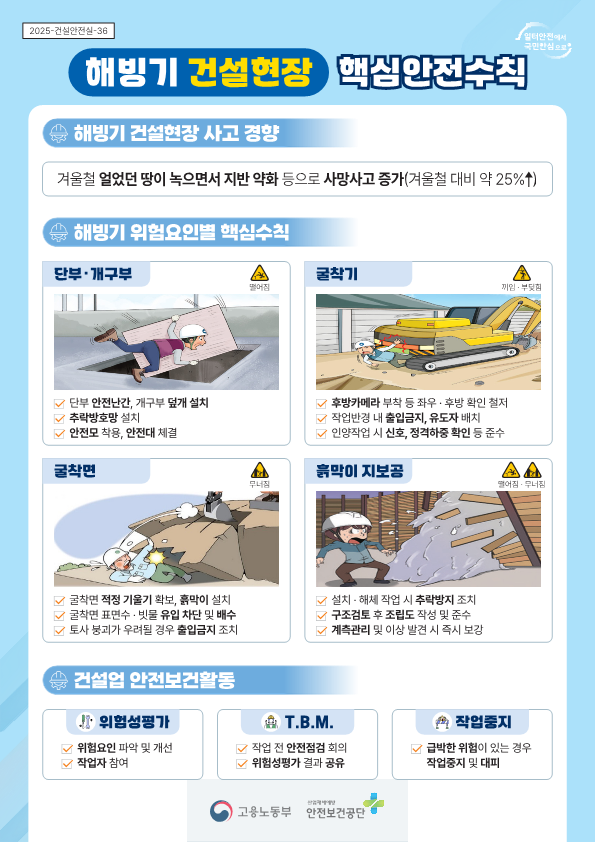 [고용노동부/안전보건공단] 해빙기 사고 및 화재·폭발 사고 예방을 위한 집중 점검(건설현장 해빙기 안전보건길잡이 등)