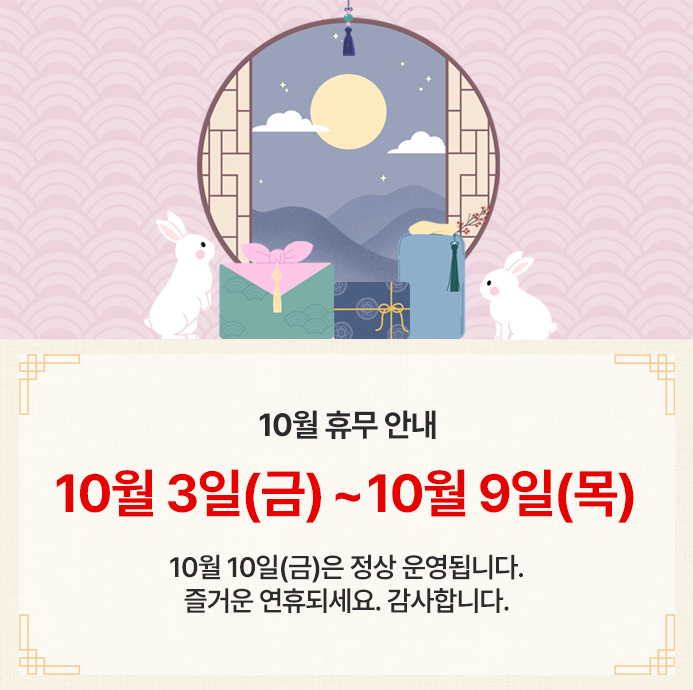 ◈휴무일 : 2025년 10월 03일(금) ~ 2025년 10월 09일(목)