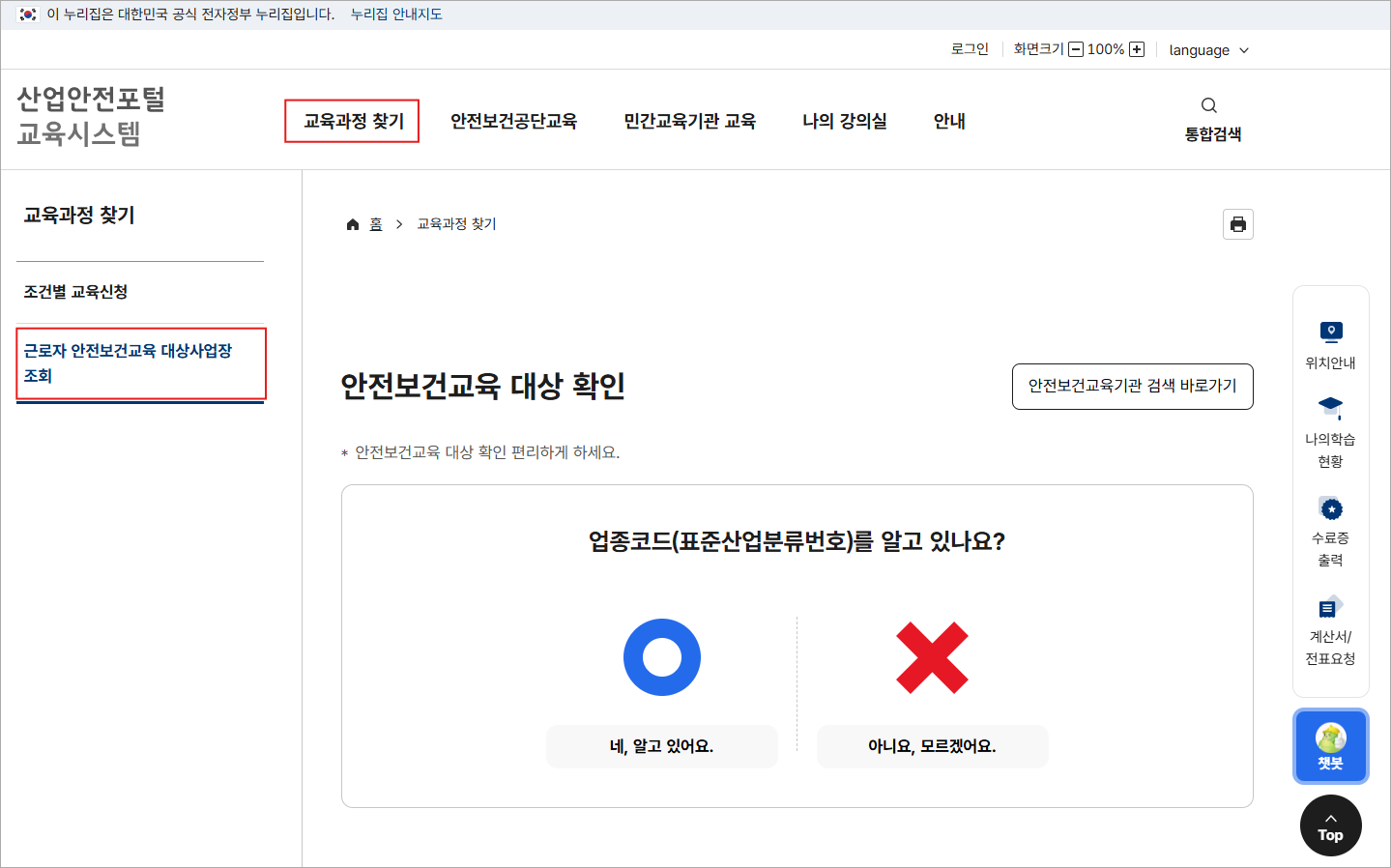 [중요] 산업안전포털 교육시스템 - 안전보건교육 대상 확인하는 방법